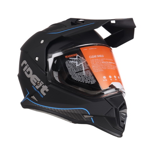 Inicio / CASCOS / CASCO MOTO DUAL RIDEIT PREDATOR NEGRO AZUL MATE T/S B