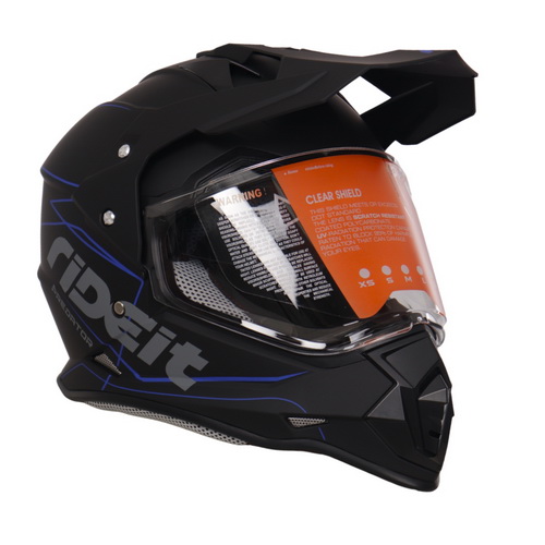 CASCO MOTO DUAL RIDEIT PREDATOR NEGRO AZUL MATE T/XL A