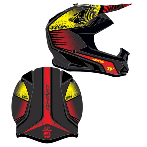 CASCO MOTO MX FX RHINO NEGRO ROJO/AMARILLO, T/XL