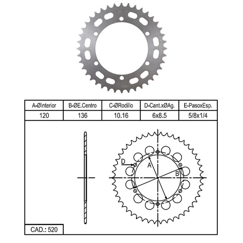 PIÑON TRAS XTZ250 39T 6H 520 RIDEIT