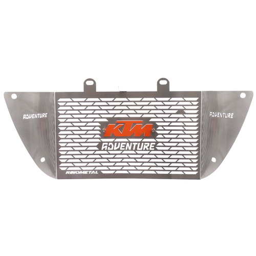 / PROTECTOR DE RADIADOR KTM ADVENTURE 250/390 PLATA LOGO NARANJA RINO METAL